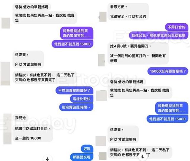 容竟要價3倍即1萬8000元,恐有觸法疑慮。警方表示,涉賣黃牛票恐觸犯社維法,但目前