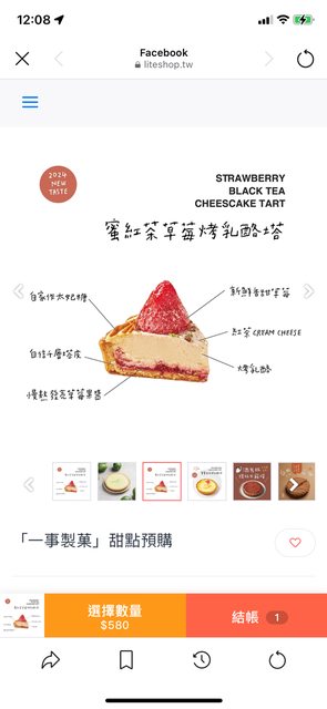 想訂六吋 蜜紅茶草莓烤乳酪塔