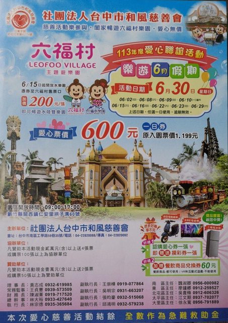 一日票600元,查了一下六福村參加活動的價錢大概是699