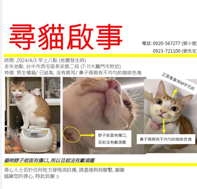 標題[協尋] 協尋/西屯區/橘貓