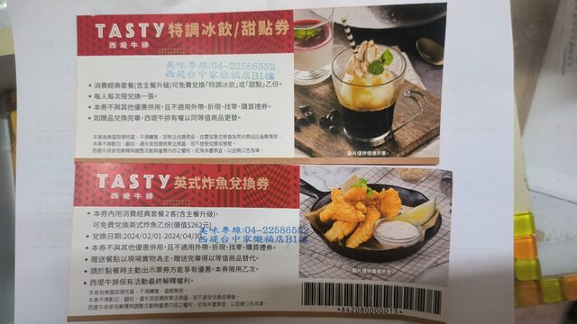 英式炸魚兌換券2張,期限到4/30