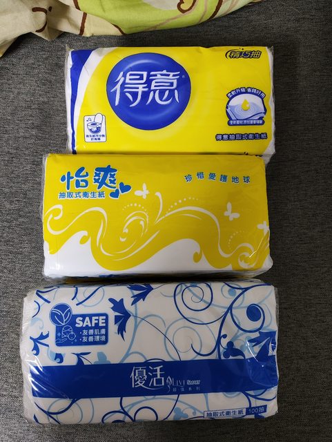 [交易] 雜牌衛生紙多包出售,有得意/怡爽/優活三款隨機(怡爽數量最多)