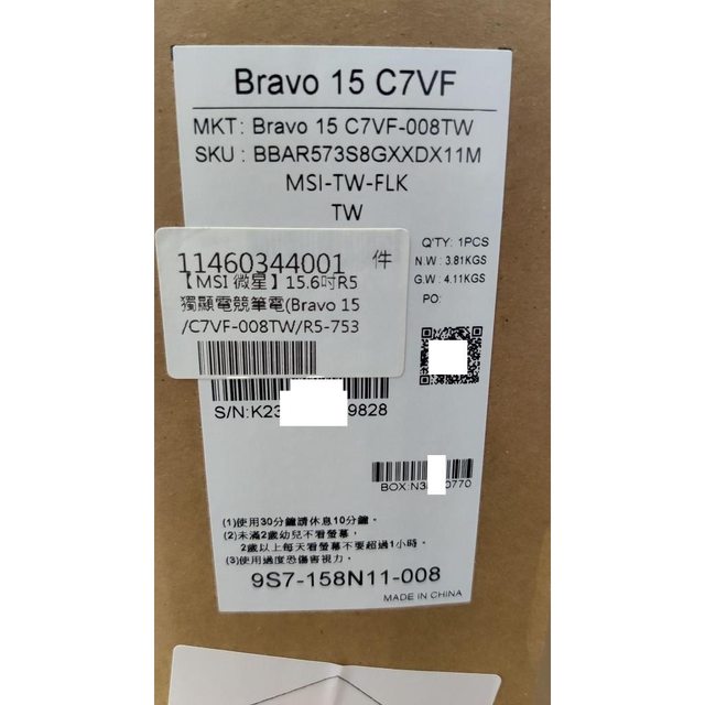 已售出)MSI 微星 Bravo 15 C7VFK-200TW 4060 筆電