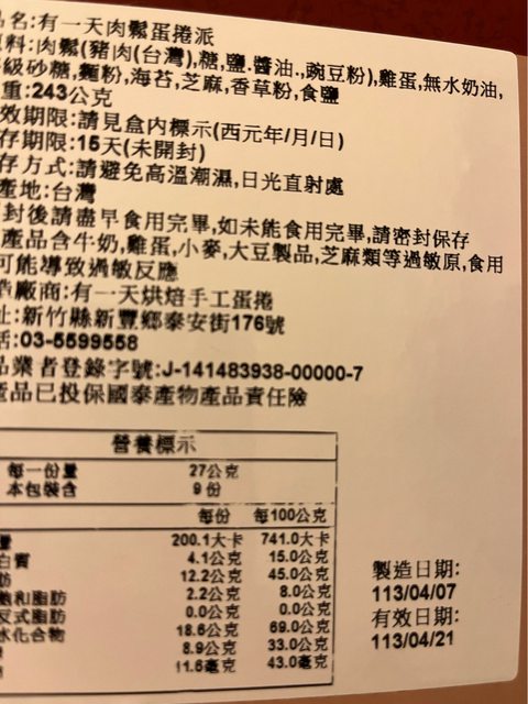 物品名稱:有一天 烘培蛋捲