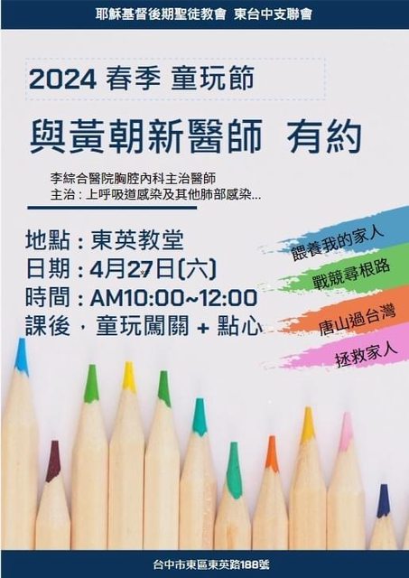免費社區講座歡迎大家一起來 2024春玩活動