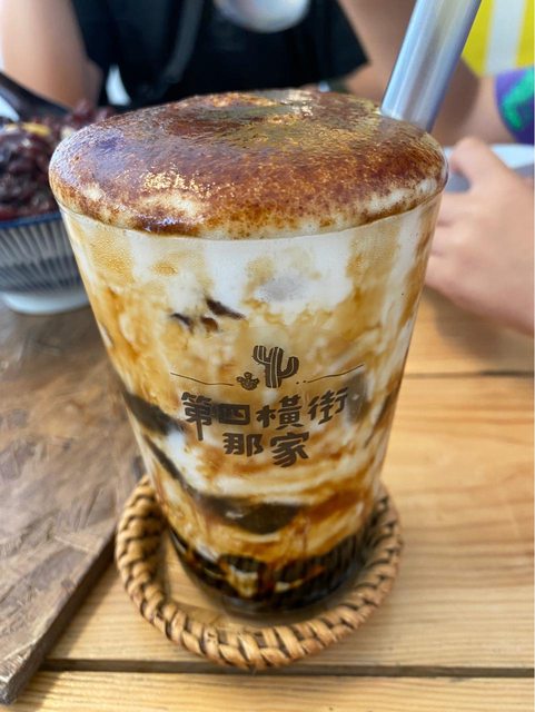 黑糖珍珠鮮奶搭配焦糖脆片與綿密奶泡,口感超棒,讓孩子們享受甜品吧!