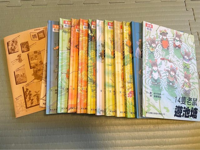 13.近新漢聲14隻老鼠系列繪本(12本) 2700元(含盒/導讀手冊),置書櫃中,書上面 有些許灰塵