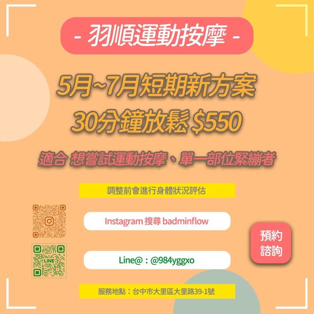 標題[商業] 大里/羽順運動按摩5-7月限時方案