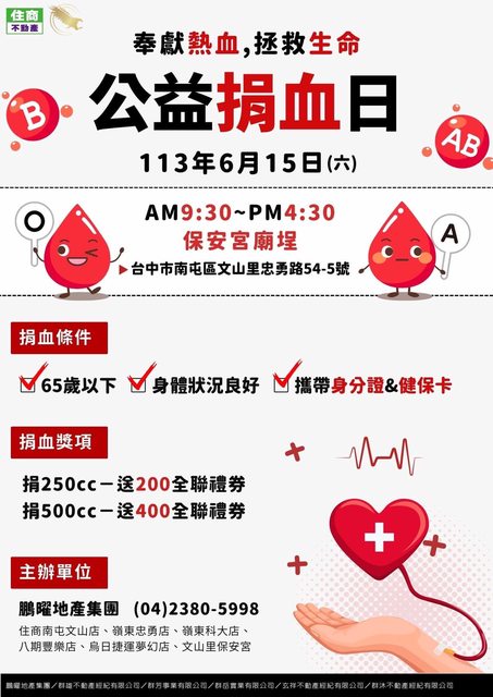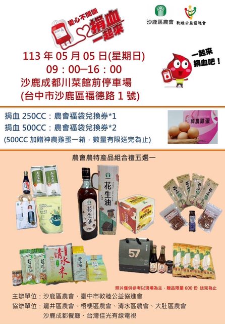 台中五月份捐血贈品活動