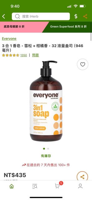詳細介紹請參考iHerb ,頗大一瓶,用過兩三次,洗起來太滑溜不喜歡