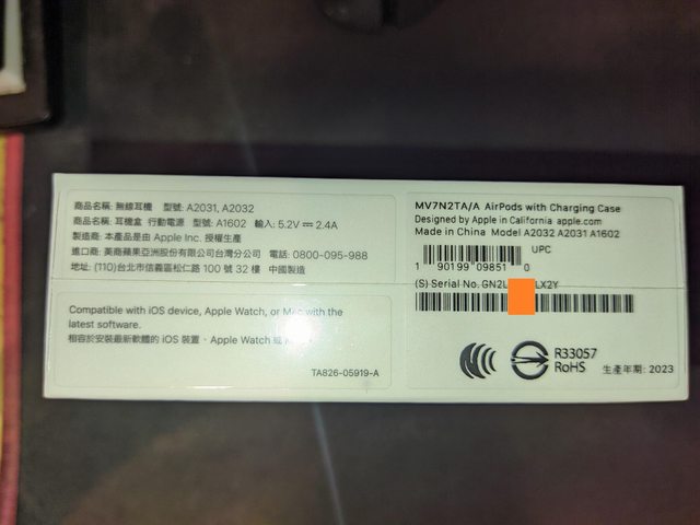 型號: AirPods 2