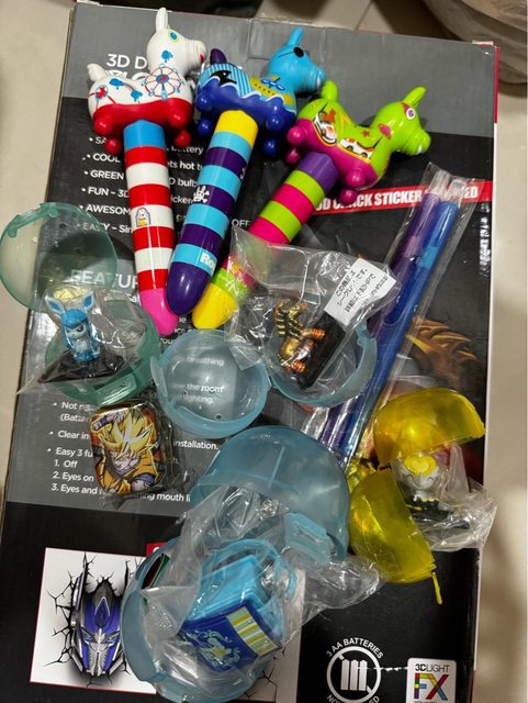 3.跳跳馬螢光筆、扭蛋、七龍珠小盒子?蠟筆兩隻