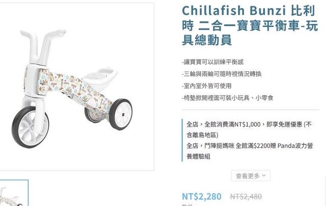 商品名稱:Chillafish Bunzi 比利時 二合一寶寶平衡車-玩具總動員