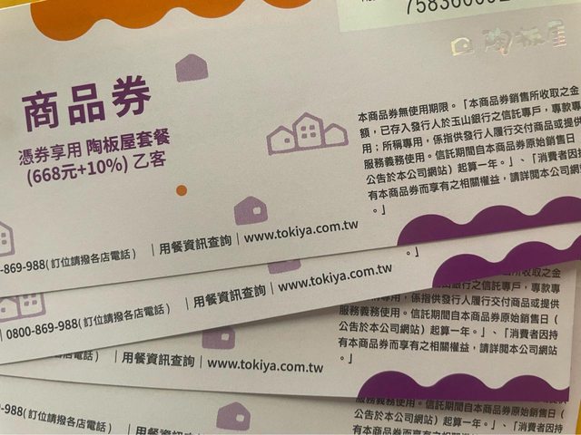 陶板屋餐券*8張