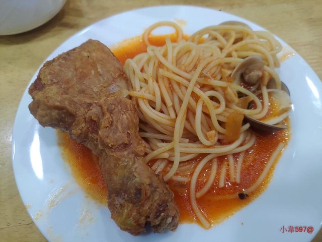 不只披薩,義大利麵,炸雞腿,店內還有炸薯條,炸雞塊,炸地瓜球,
