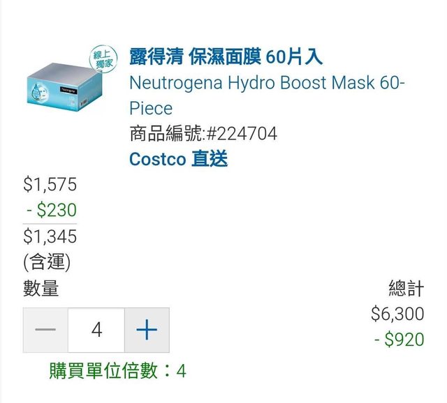 6. (全新)露得清保濕面膜 60入 NT$1345元