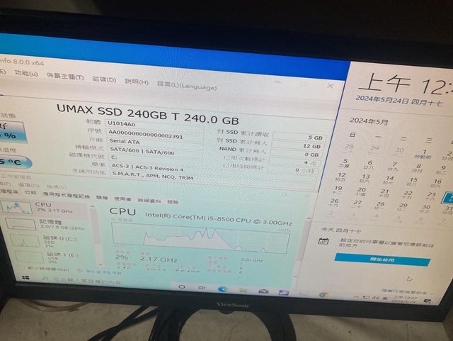 SSD 240GB 硬碟近全新,僅拆封裝機重灌