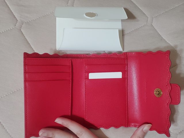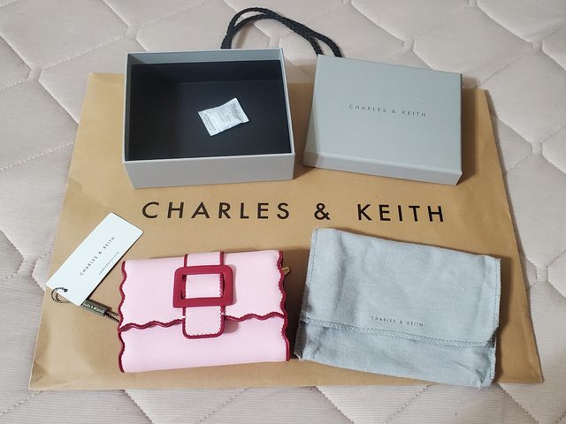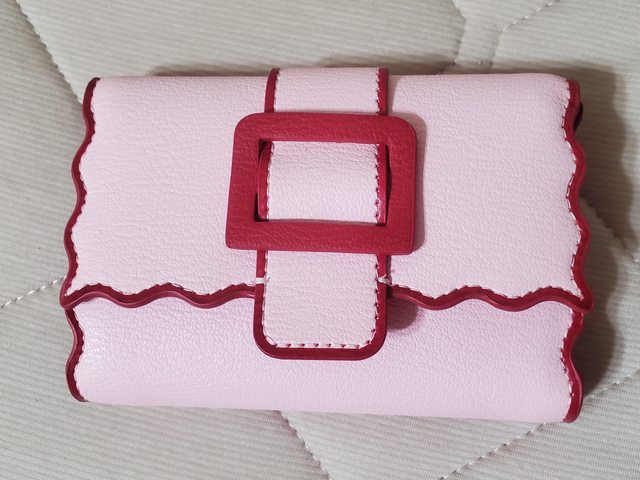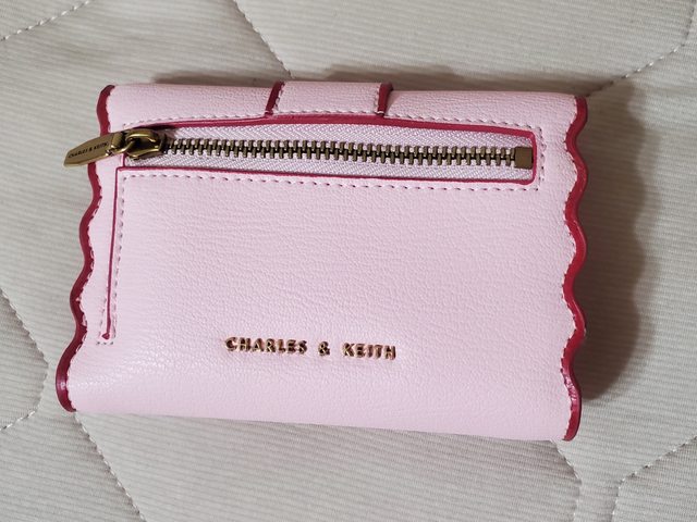 2. 小CK粉色波浪滾邊短夾 $750 (但也有點接近中夾 是去年出的款式,全新未使用,僅此次拿出來拍細節照 含Logo大紙袋/盒子/防塵袋