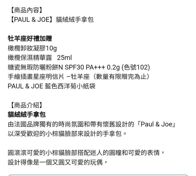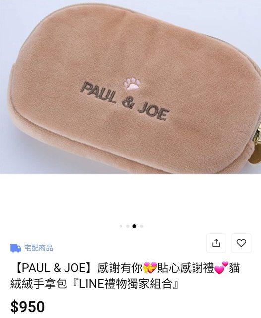 3. PAUL &JOE貓絨絨手拿包&旅行組 $800 全新未使用,僅此次拿出來拍細節照 含Logo紙袋/手拿包的袋子從未拆過 因此部分照片取自官網