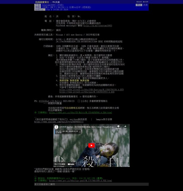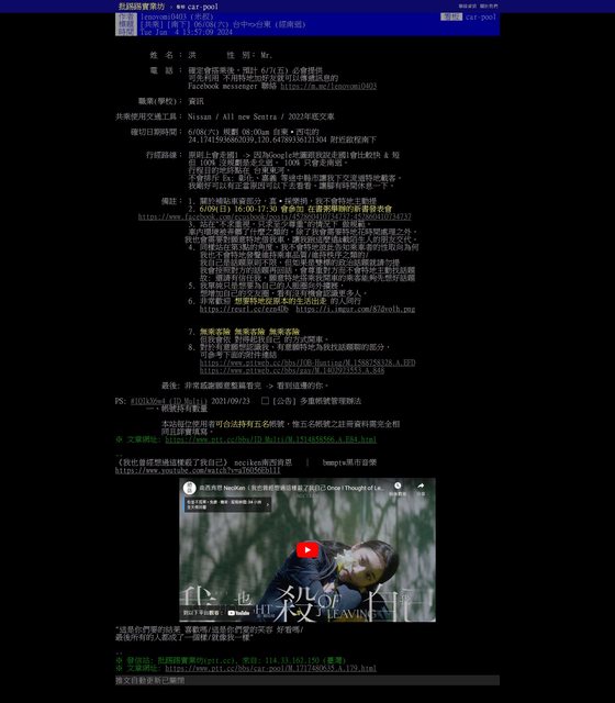 ※ 文章網址: https://pttbestweb.org.tw/car-pool/M.1717480635.A.179