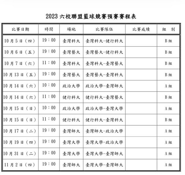 由臺師大首創,聯合臺大、臺科、政大、健行、臺藝共六校的全國大專主客場邀請賽,效