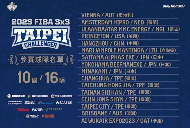 https://worldtour.fiba3x3.com/2023/challengers/taipei/teams 16隻隊伍
