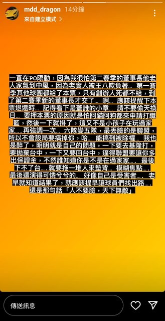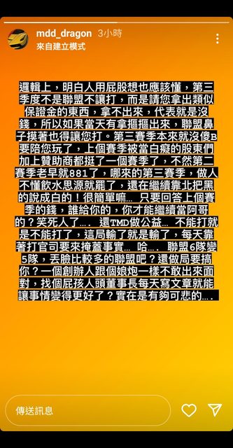 推 linyyggtt : 其他不予置評不過蠻認同他說的那句”把球隊踢掉丟 10/22 01:42