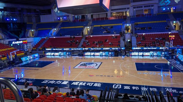進入球場看到和平籃球館首次舉辦東超主場賽事的塗裝!
