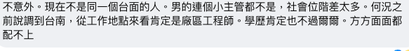 噓 roberttony : 男未婚女未嫁 偷吃就勇敢承認哪有什麼,難怪後面鐵 11/28 11:15