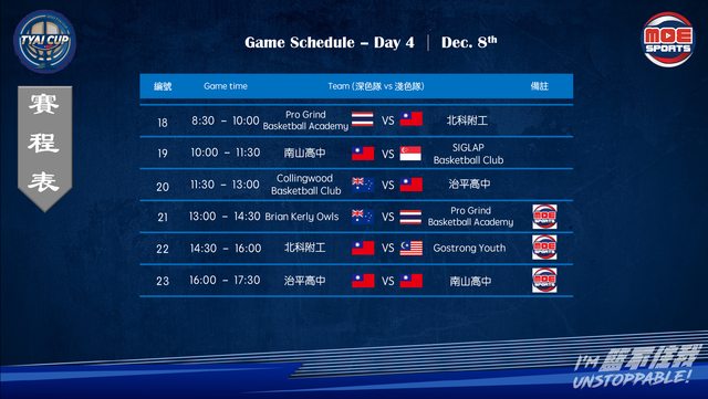 12/08(五)|2023 年北科附工盃新南向國際籃球邀請賽|Day-4 13:00轉播