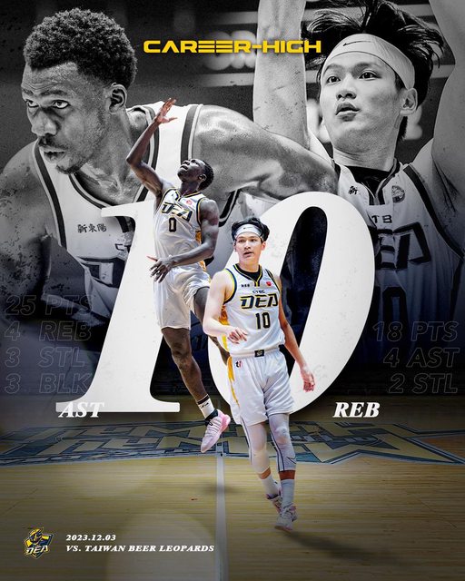 教練團賽前的叮嚀,「人力吃緊的非常時期,全隊一起分擔場上的責任,對團隊是貢獻、對個人是突破。」雖然未能拿下最終勝利,但巴西和亞軒兩人雙雙在上週日寫下進入職業後的里程碑,從進攻到防守都能看見「豹喵連線」的身影!
