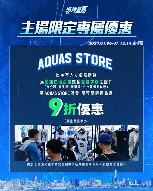 主場限定專屬優惠,購買指定款式搭配,或為高雄在地企業出示高雄字樣之證件,都享九折優惠