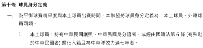 推 dgq75148 : 外籍生、歸化、華裔算成一類,在台籃打球時間超過一02/05 11:23