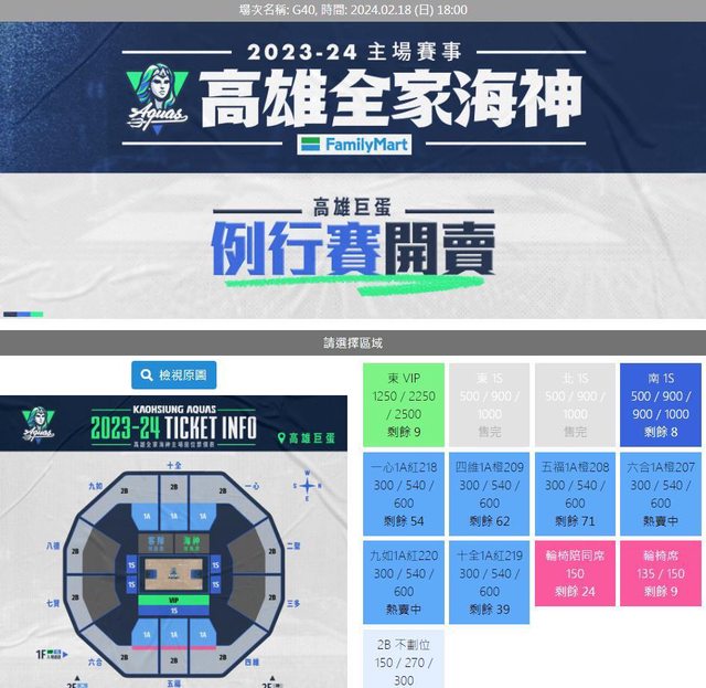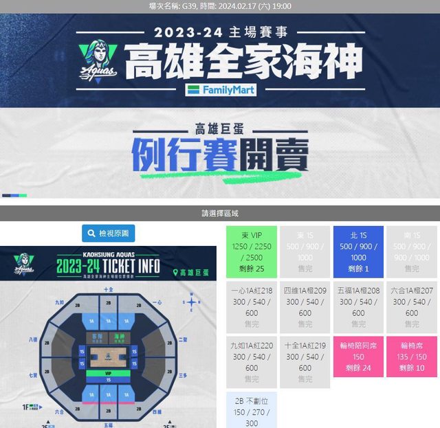 他要買票時發現17日那場幾乎沒有1A能買了