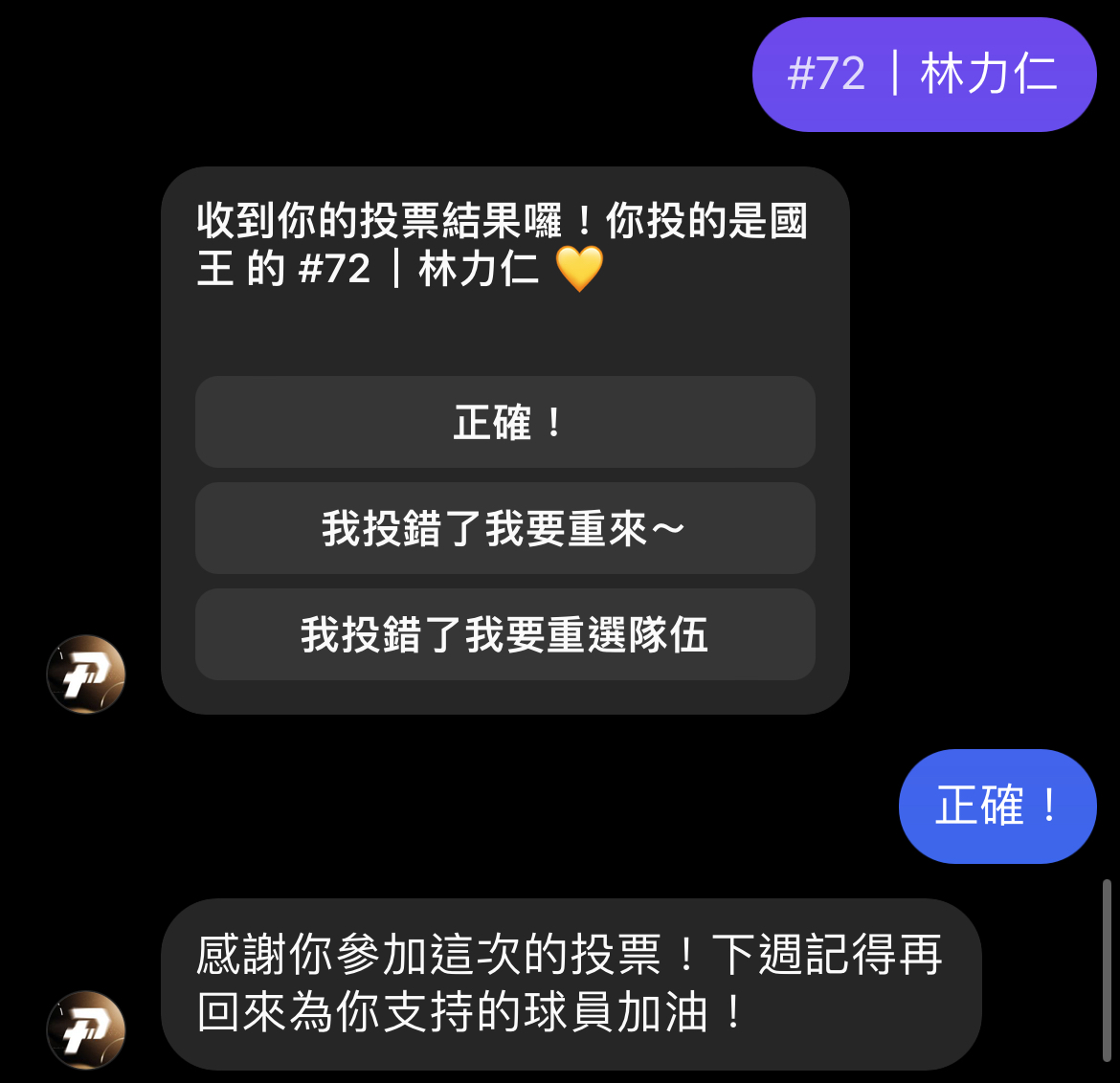推 Luka7714 : 上週沒辦法投力王害我夜不能寐,這週第一時間就投 04/07 20:23