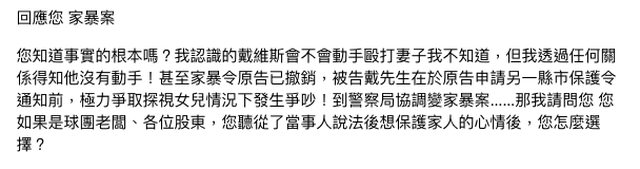 對此,PLG聯盟策略總監兼發言人王博麟表示,「紀律委員會是在今日召開,戴維斯本人