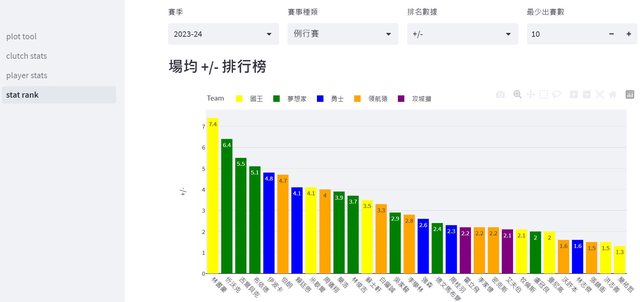 在左側欄上方可以選擇"stat_rank"頁面,主要就是把賽季數據排行可視化