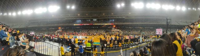 慢慢入座,絢麗奪目的聲光效果,雙方的DJ相互叫陣,我們的應援團隊也賣力吶喊,因為