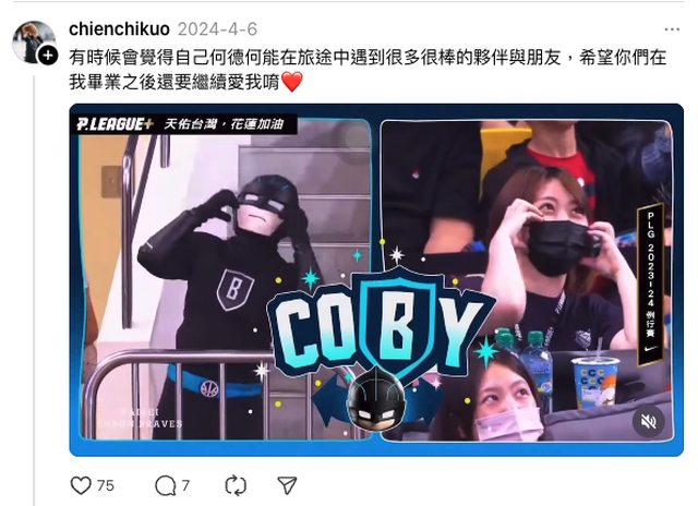 → KobeIchiro : 場邊工作人員另一半好像是台新助教 04/27 23:25