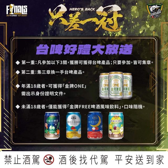 未滿18歲者,僅能獲得「金牌FREE啤酒風味飲料」,口味隨機。