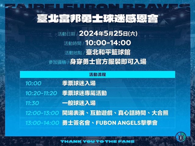 將於5月25日在主場和平籃球館舉辦球迷感恩會