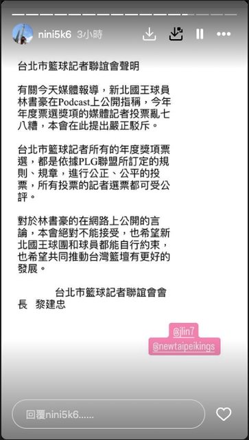 噓 hsuanYue : 説什麼新北ig限動隊、現在看來籃球記者ig聯誼會、 06/28 02:05