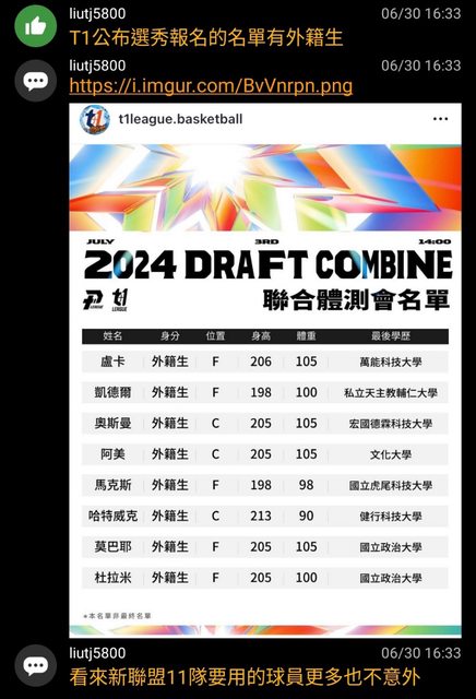 噓 hopdogb : 都沒外籍生選秀了,新聯盟有種一點,直接拒絕他們體 07/02 18:07