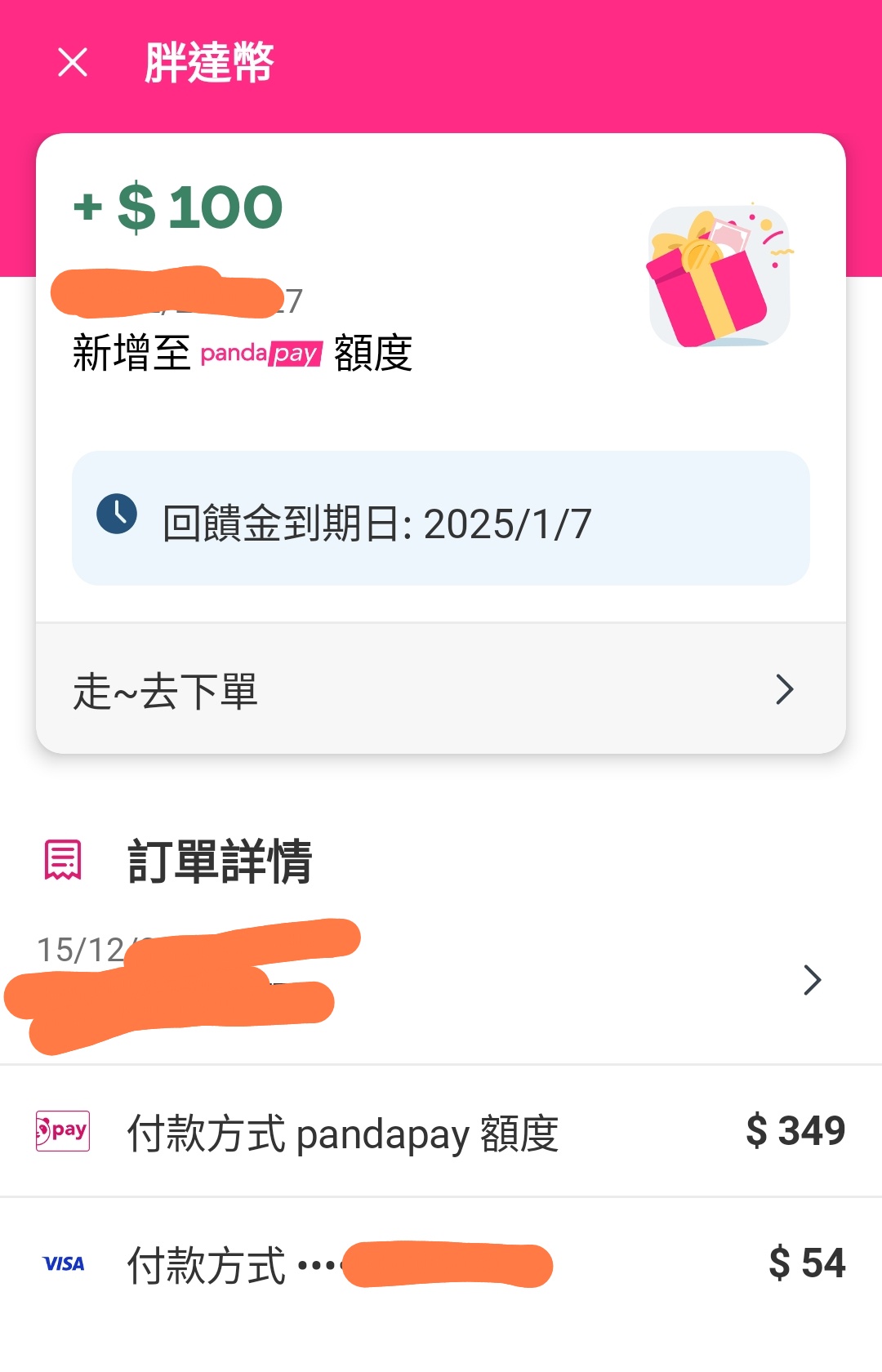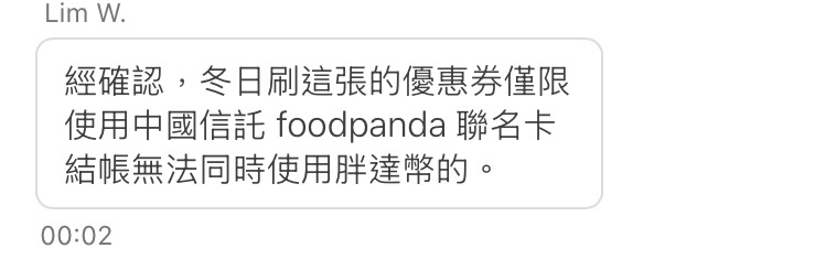 → chartie : 不是現折是事後回饋,且外帶外送是送100 12/27 21:40