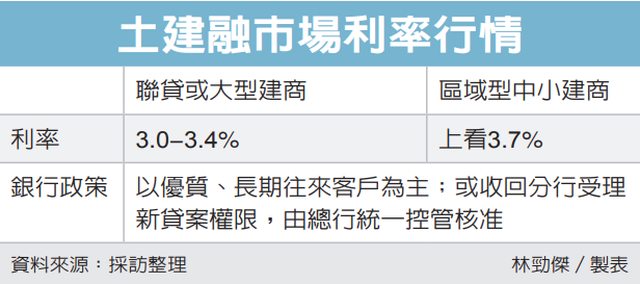 內文:中小建商土建融利率上看3.7% 國銀主管坦言業者能借到錢就不錯了