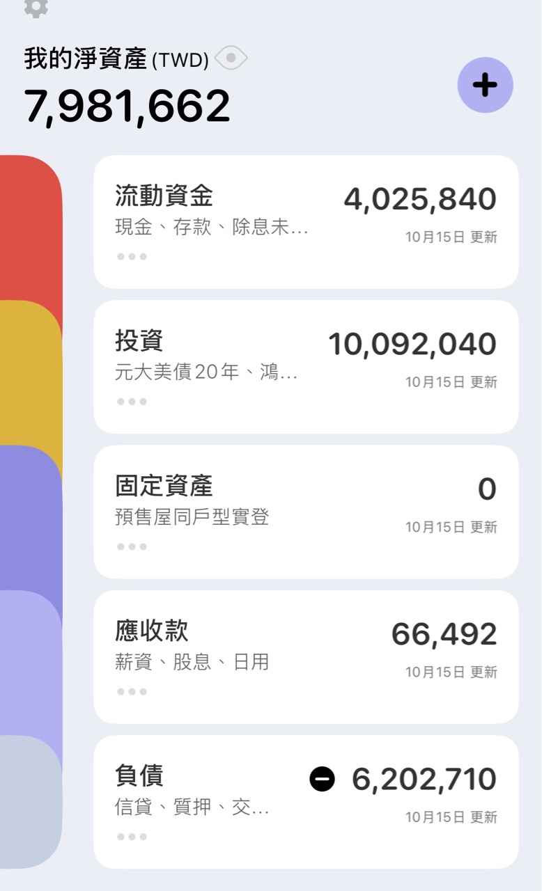 → IBIZA: 我的方法比較簡單 1.儲蓄定存直到1050萬 10/15 12:00