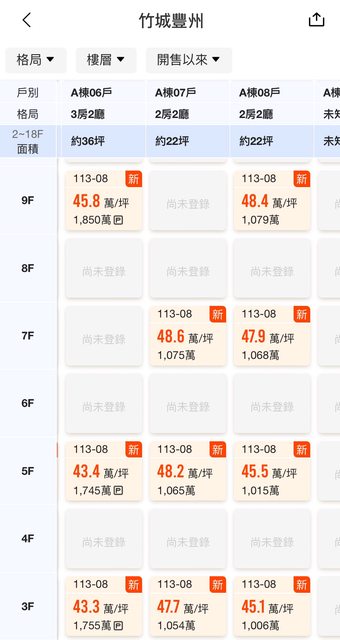 : 論坪數,竹城豐洲成交戶的坪數沒有比較大喔,價錢還比較低。