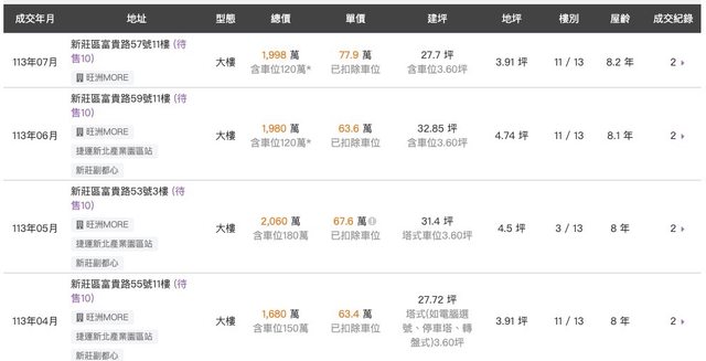 本物件附近地址實價登錄 :