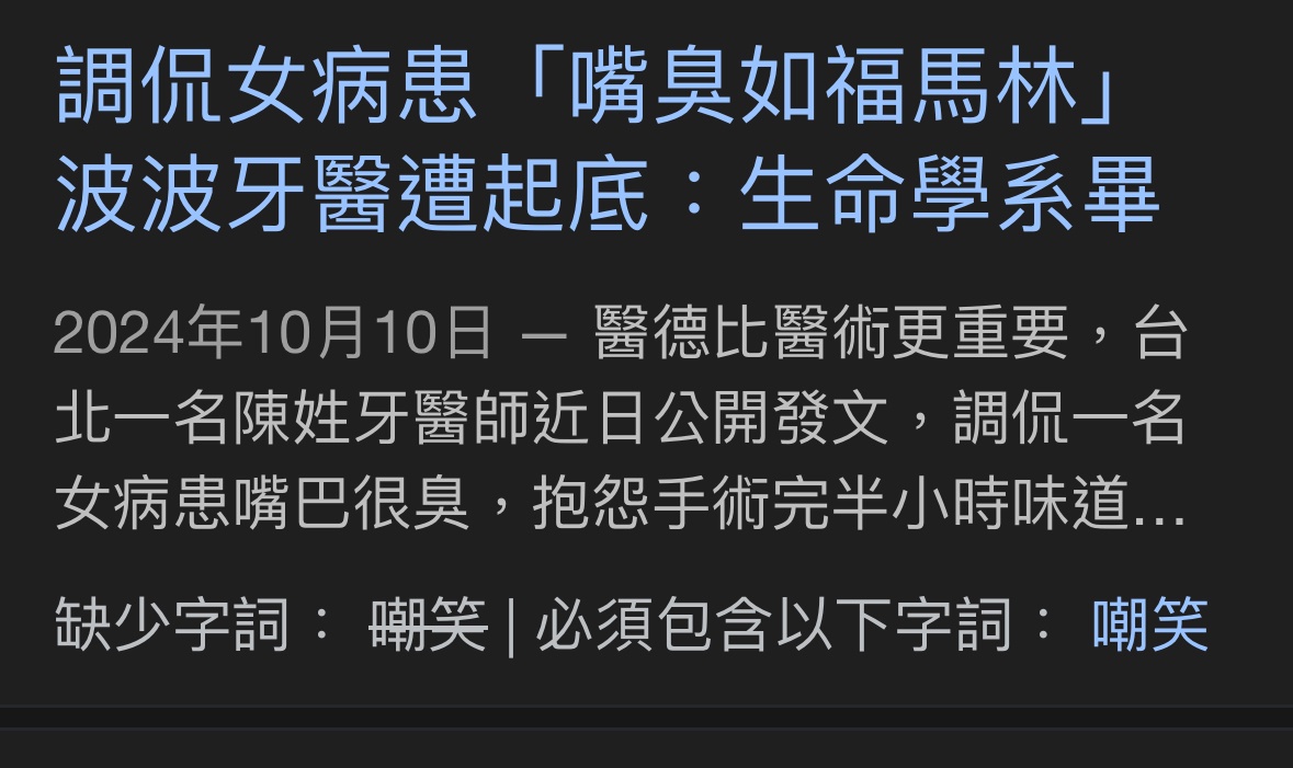 → Ddylan: 現在進醫牙先看看有沒有背景,沒有就別鬧了 10/24 17:05
