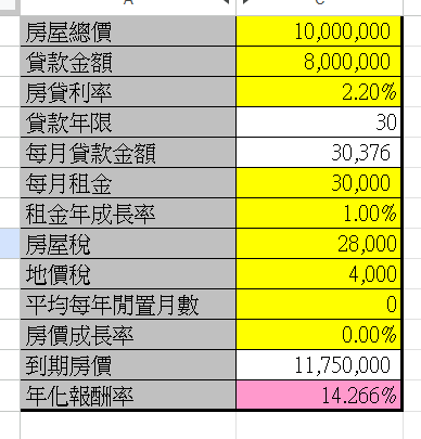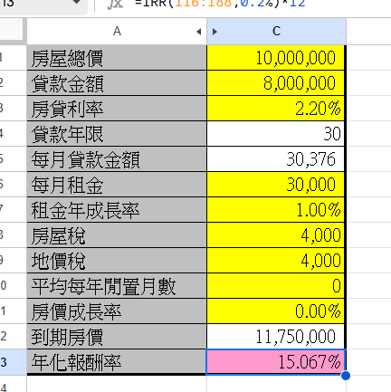推 EvilJustice: 差不多是這樣,不過這邊房價是用翻倍在算的 10/25 12:53
